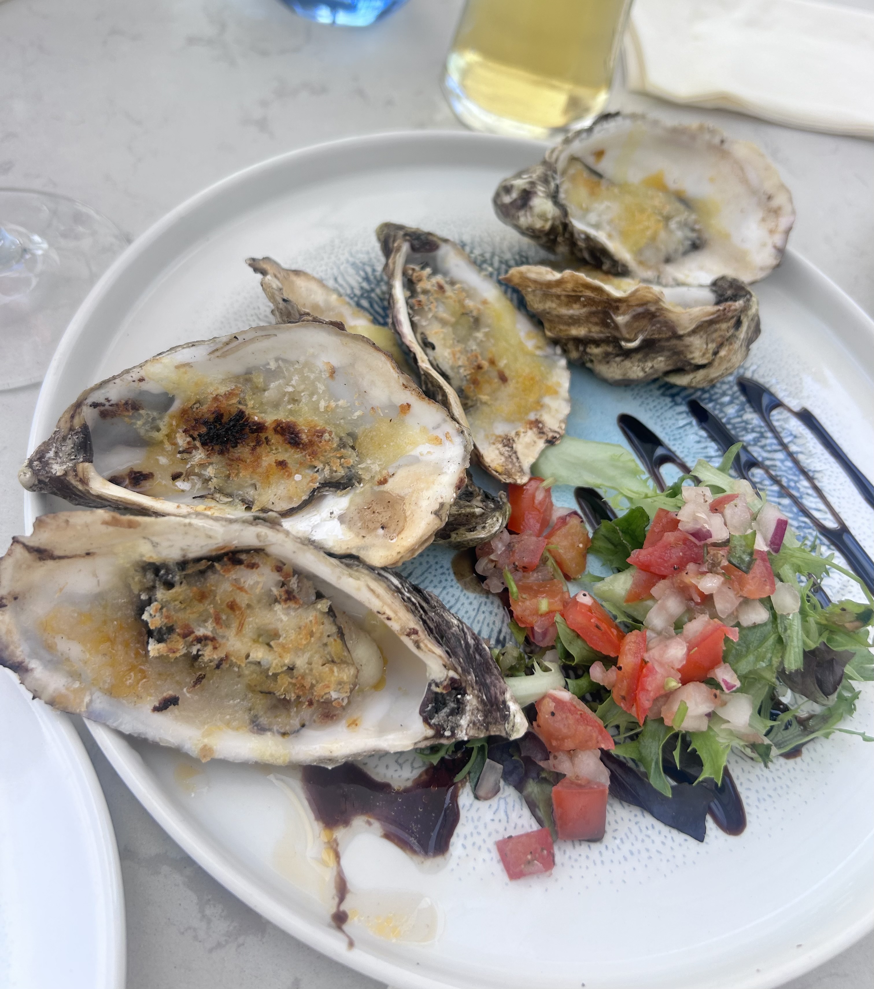 Oyster Creek Kitchen in Southend is ideally located on the seafront and offers excellent sea views. The outdoor area and terrace feels like you are transformed to the Mediterranean and is the perfect spot to enjoy some oysters, fish or a glass of wine. The baked oysters are some of the best we have ever had.